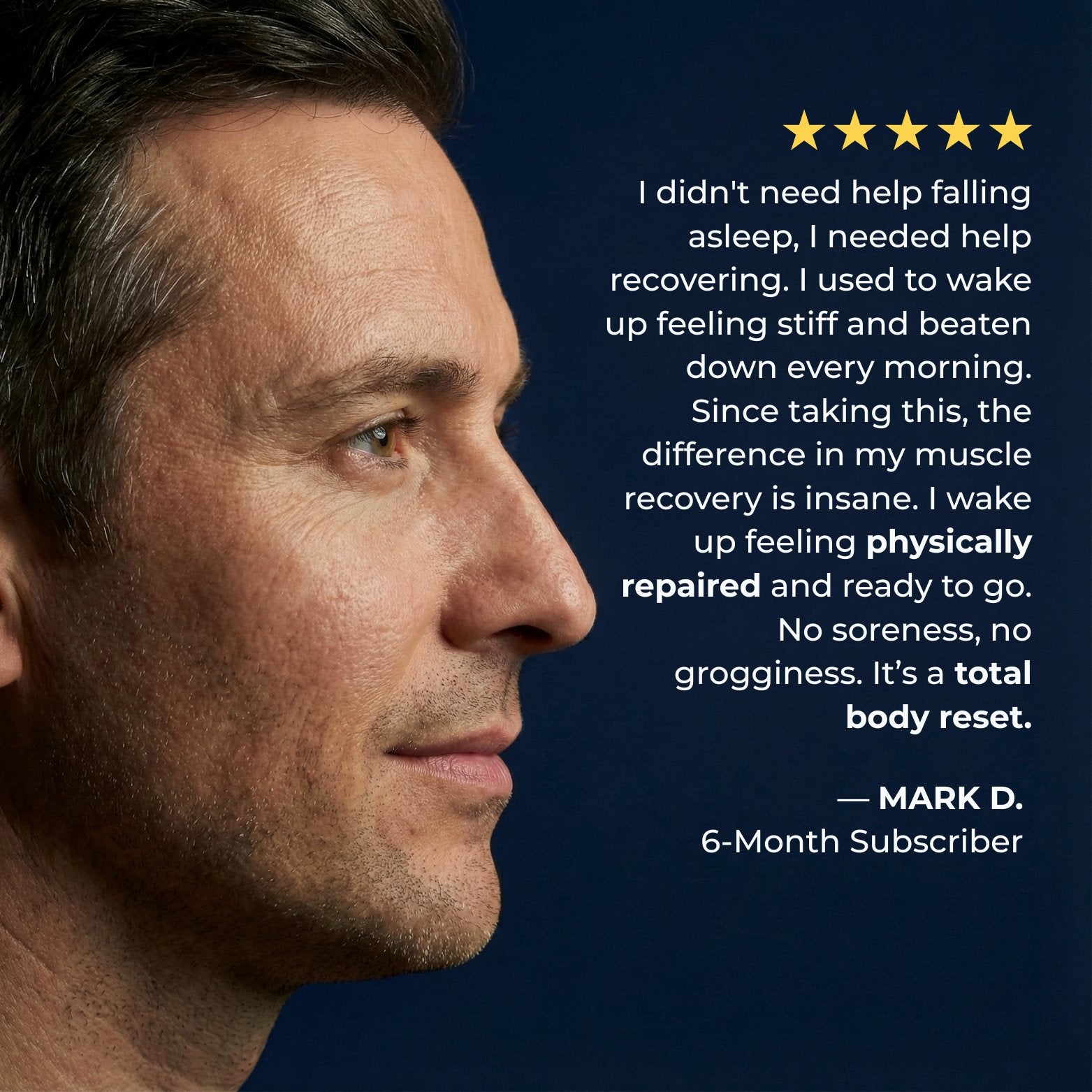 Sleep was always a struggle. Since taking Regain, I wake up recovered, clear, and more relaxed.